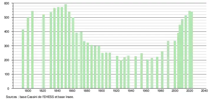 - ↑ Population municipale de référence en vigueur au 1er janvier 2025, millésimée 2022, définie dans les limites territoriales en vigueur au 1er janvier 2024, date de référence statistique : 1er janvier 2022.