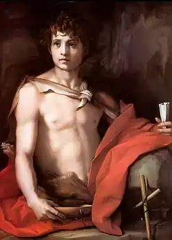 - (en) Cet article est partiellement ou en totalité issu de l’article de Wikipédia en anglais intitulé « John the Baptist (Caravaggio) » (voir la liste des auteurs).