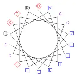 - ↑ (en) Marianne Schiffer et Allen B. Edmundson, « Use of Helical Wheels to Represent the Structures of Proteins and to Identify Segments with Helical Potential », Biophysical Journal, vol. 7, no 2, , p. 121-135 (PMID 6048867, PMCID 1368002, DOI 10.1016/S0006-3495(67)86579-2, lire en ligne)