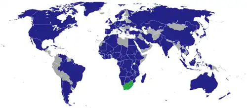 Voici les représentations diplomatiques de l'Afrique du Sud à l'étranger :