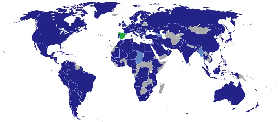 Voici les représentations diplomatiques de l'Espagne à l'étranger :