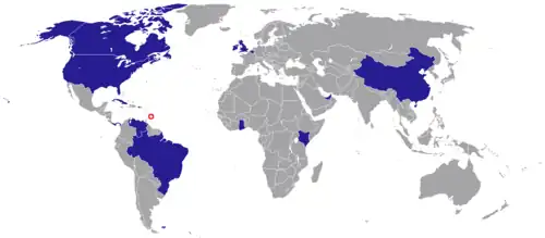 Pays qui hébergent une ambassade ou un haut-commissariat de la Barbade