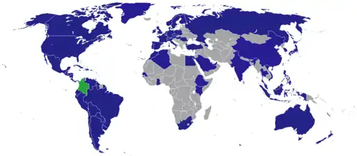 - (en) Cet article est partiellement ou en totalité issu de l’article de Wikipédia en anglais intitulé « List of diplomatic missions of Colombia » (voir la liste des auteurs).