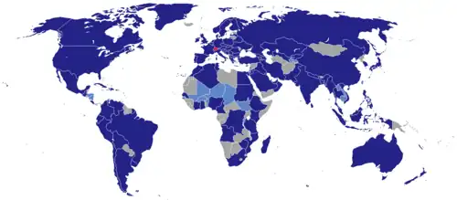 | Pays | Ambassades | Consulats généraux | Consulats |