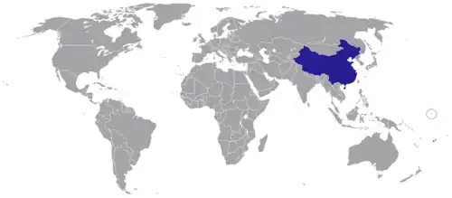 Les Kiribati ont ouvert une ambassade à Taipei et une mission permanente auprès des Nations unies à New York en 2013. Cependant, en 2019, le président Taneti Maamau a décidé de reconnaître la République populaire de Chine, ce qui a entraîné la fermeture de l'ambassade des Kiribati à Taipei[1].
