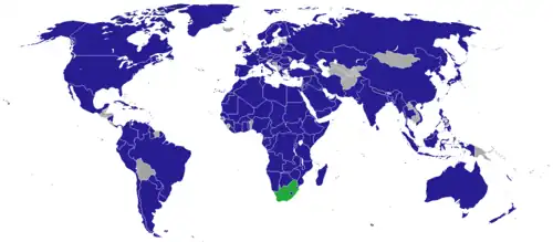 - (en) Cet article est partiellement ou en totalité issu de l’article de Wikipédia en anglais intitulé « List of diplomatic missions in South Africa » (voir la liste des auteurs).