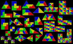 Certains triangles ou parallélogrammes peuvent avoir deux ordres de réplication, par exemple 4 et 7 qui se combinent ensuite (4,7,8,14,16,28,32 etc.).