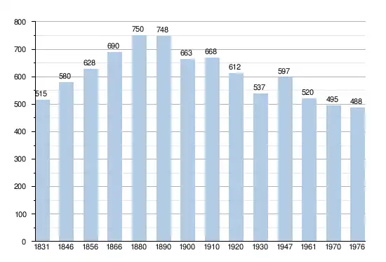 - Source: DGS, 1831 à 1970=recensements population, 1976= habitants au 31 décembre