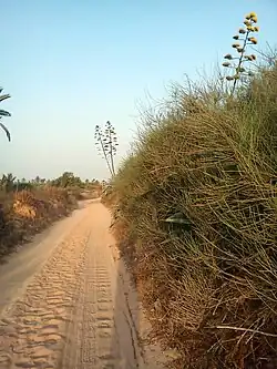 Au village Mezraya à l'île Djerba, le genêt blanc est l'une des espèces utilisées pour former les haies (Tabia) qui séparent les Menzels.