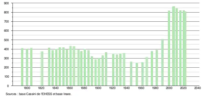 - ↑ Fiches Insee - Populations de référence de la commune pour les années 2006, 2007, 2008, 2009, 2010, 2011, 2012, 2013, 2014, 2015, 2016, 2017, 2018, 2019, 2020, 2021 et 2022.