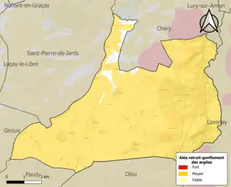 Les communes limitrophes[1] sont : Lazenay (2 km), Chéry (4 km), Diou (4 km), Saint-Pierre-de-Jards (6 km), Giroux (10 km) et Paudy (11 km).