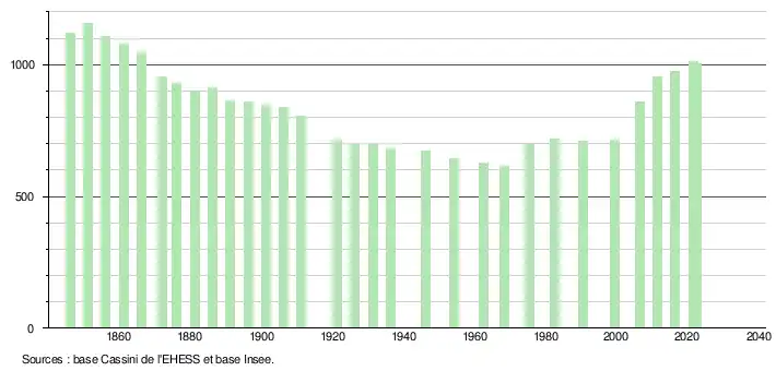 - ↑ Fiches Insee - Populations de référence de la commune pour les années 2006, 2007, 2008, 2009, 2010, 2011, 2012, 2013, 2014, 2015, 2016, 2017, 2018, 2019, 2020, 2021 et 2022.