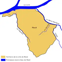 La Loire et la Sèvre Nantaise ont conditionné la géologie et l'histoire de Rezé. Autrefois, la commune de Rezé était bordée par un des nombreux bras de la Loire, le Seil. Ce bras de la Loire débutait en amont du fleuve, au niveau de la confluence de la Sèvre Nantaise et de la Loire. Le Seil formait une boire (ancien bras de la Loire n'étant plus connecté que par intermittence au fleuve) qui s'écoulait vers l'aval et rejoignait le bras principal de la Loire à la hauteur du village de Trentemoult. L'ancien port fluvial gallo-romain de la cité pictonne de Ratiatum était situé sur la rive du Seil. Le Seil fut comblé par l'urbanisation de la ville. Enterré sous le macadam d'une voie rapide et par l'aménagement d'une zone commerciale (Atout-Sud), ce bras-mort de la Loire voit ses eaux ressurgir dans des fossés aménagés lors de fortes pluies ou des crues de la Loire.
