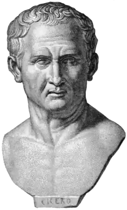 L'orateur et homme politique romain Cicéron (106-), est, aux côtés de Quintilien, l'expert en rhétorique romain le plus célèbre et le plus influent.
