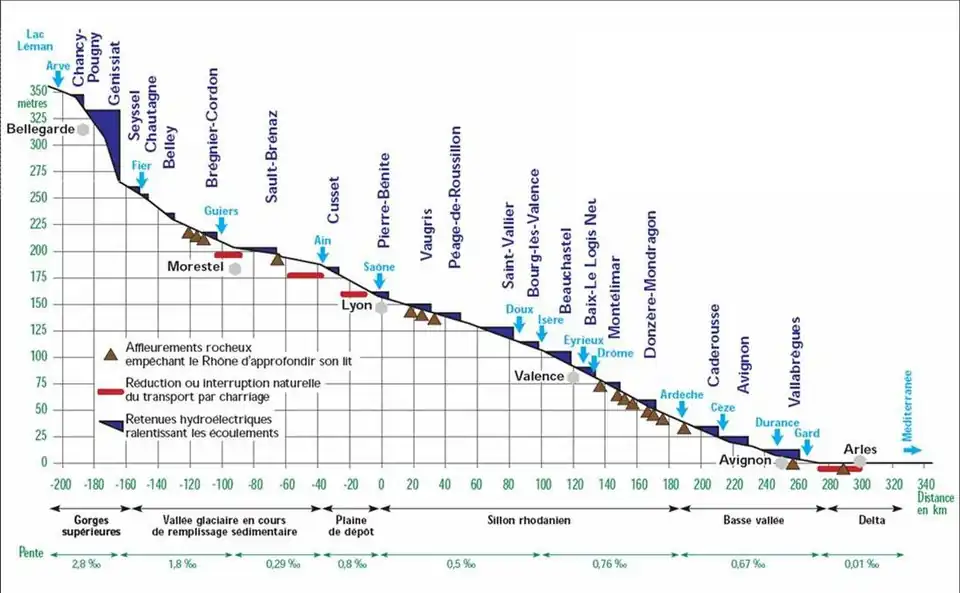 - ↑ Zone Atelier Bassin du Rhône, « Le Rhône en 100 questions. Chap. 2 : Le fonctionnement du fleuve », (consulté le )