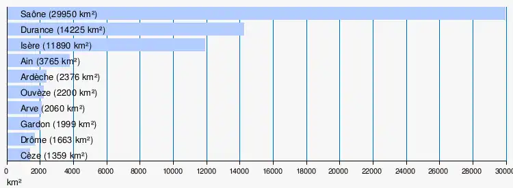 Liste des principaux affluents directs du Rhône (longueur[4] supérieure à 100 km, ou bassin versant[1] supérieur à 1 000 km2 ou débit[1] moyen (module) supérieur à 10 m3/s connu au plus proche de la confluence) et situés avec leur confluence par :