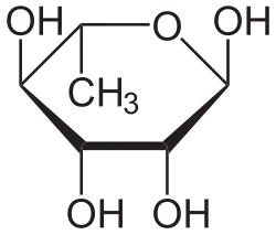 Le rhamnose est un 6-désoxyhexose du type aldose, il est constitué d’une chaîne de 5 éléments carbone ainsi que d’une fonction aldéhyde. Il peut être classifié soit comme un méthyl-pentose ou soit comme un 6-déoxyhexose.