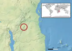Cette espèce est endémique de Tanzanie[1]. Elle se rencontre vers 1 000 m d'altitude dans les monts Mahenge.
