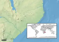 Cette espèce est endémique de la province de Zambézie au Mozambique[1]. Elle se rencontre dans le massif du mont Mabu.