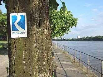 Balisage du Rheinsteig. Photo rive droite du Rhin à Bonn.