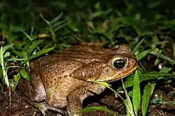 - ↑ (en) Kidera, Tandavanitj, Oh & Nakanishi, « Dietary habits of the introduced cane toad Bufo marinus (Amphibia : Bufonidae) on Ishigakijima, southern Ryukyus, Japan », Pacific Science, vol. 62, no 3, , p. 423-440.