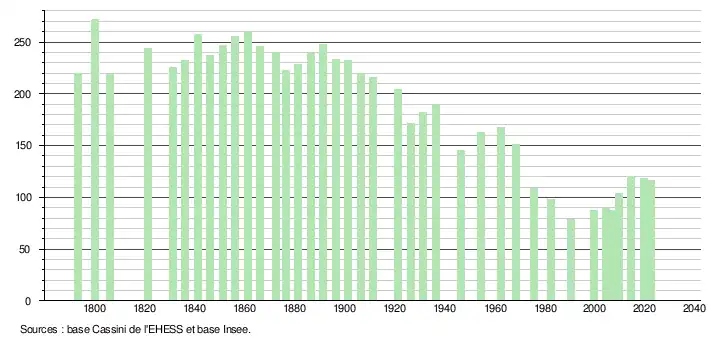- ↑ Fiches Insee - Populations de référence de la commune pour les années 2006, 2007, 2008, 2009, 2010, 2011, 2012, 2013, 2014, 2015, 2016, 2017, 2018, 2019, 2020, 2021 et 2022.