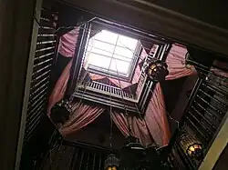 Les chambres sont à l'étage tandis que le sommet du puits de jour peut être ouvert, ou fermé par une toile ou une verrière rétractable, selon la saison, le niveau de lumière, de chaleur, la météo, etc. Le toit est aménagé en terrasse[9] de plein ciel, donnant sur les autres toits et l’environnement urbain. il peut comporter un solarium et un hammam.