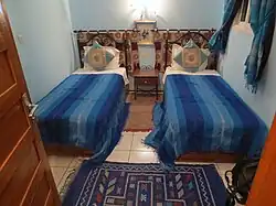 Situés le plus souvent dans une médina[8], ils comportent en général un seul étage du fait de contraintes administratives ; en outre, l'architecture de certains quartiers prévoit des règles particulières, du fait, par exemple, de la proximité d'un monument comme une kasbah (palais royal).