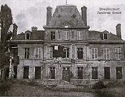 Dès 1914, sur la route de Paris, Ribécourt essuie durant la guerre de positions, de nombreux bombardements. Elle sera évacuée au printemps 1915. De l'autre côté du front, Dreslincourt, côté allemand est entièrement rasée par l'artillerie française et une partie de sa population déplacée ou déportée. Ribécourt, ruinée, se relèvera rapidement par sa fonction politique de chef-lieu, sa situation géographique et sa tradition industrielle. La renaissance de Dreslincourt, traumatisée, sera plus longue. Village détruit, familles décimées, patrimoine dissous, Dreslincourt ne bénéficiera pas de l'essor lié à la reconstruction comme Ribécourt, mais sa proximité limitera néanmoins l'exode rural.