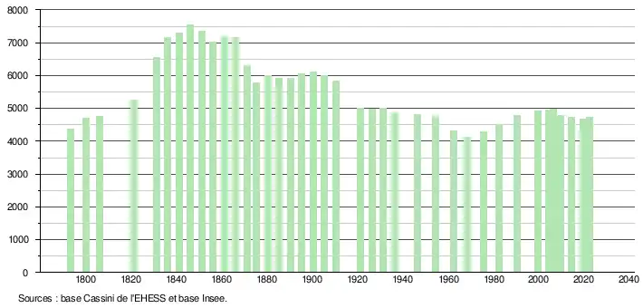 - ↑ Fiches Insee - Populations de référence de la commune pour les années 2006, 2007, 2008, 2009, 2010, 2011, 2012, 2013, 2014, 2015, 2016, 2017, 2018, 2019, 2020, 2021 et 2022.