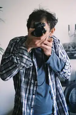 Il travaille presque exclusivement en argentique (24x36 et moyen format, essentiellement en noir et blanc).