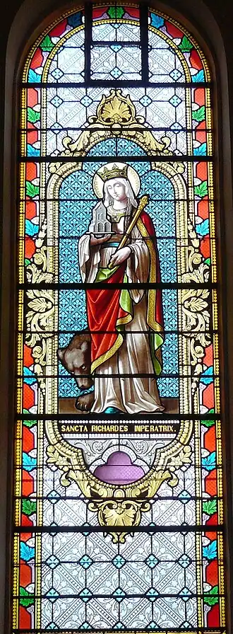 Humiliée puis répudiée par l'empereur (son mari était atteint de paranoïa), Richarde est canonisée en 1049 sous le nom de sainte Richarde d'Andlau.