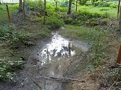 Il y a, enfin, une petite mare permanente, dans les anciens prés, devenus forêt spontanée à l’intérieur du quadrilatère Rues des Fontaines-Sous les Haxhes-Bouxthay-Bizette. Il s'agit de la Fontn’ale (petite source), décrite à cet endroit par Renard en 1934[22]. Ce toponyme est mentionné pour la première fois en 1304.