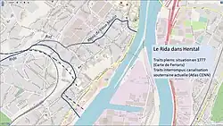 En aval de Bériwa, après le Moulin Nozé, le Rida se séparait en deux. Le cours principal était dévié par l'endroit actuel de la rue Laixheau et s'écoulait en direction de la Place Licour. En cas de grosses eaux une partie du débit passait dans le cours d'origine, par la Rue Faurieux[23], où la voûte de son passage en-dessous d'une ancienne ligne de chemin de fer est encore visible.