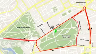 La course se dispute dans le centre historique de Londres autour du St James's Park. L'arrivée se trouve sur The Mall. La montée de la Constitution Hill est la seule difficulté du parcours.