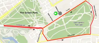 La course se dispute dans le centre historique de Londres autour du St James's Park. L'arrivée se trouve sur The Mall. La montée de la Constitution Hill est la seule difficulté du parcours.