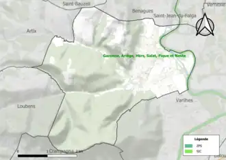 L’inventaire des zones naturelles d'intérêt écologique, faunistique et floristique (ZNIEFF) a pour objectif de réaliser une couverture des zones les plus intéressantes sur le plan écologique, essentiellement dans la perspective d’améliorer la connaissance du patrimoine naturel national et de fournir aux différents décideurs un outil d’aide à la prise en compte de l’environnement dans l’aménagement du territoire. Deux ZNIEFF de type 1[Note 4] sont recensées sur la commune[30] : le « cours de l'Ariège » (1 341 ha), couvrant 112 communes dont 86 dans l'Ariège et 26 dans la Haute-Garonne[31], et « le Plantaurel : du Mas d'Azil à l'Ariège » (15 850 ha), couvrant 26 communes du département[32] et deux ZNIEFF de type 2[Note 5],[30] :