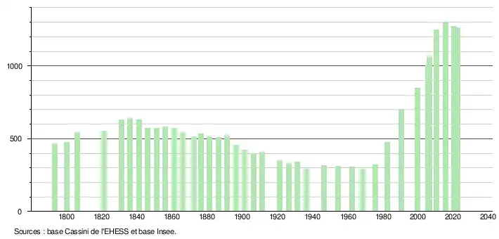 - ↑ Fiches Insee - Populations de référence de la commune pour les années 2006, 2007, 2008, 2009, 2010, 2011, 2012, 2013, 2014, 2015, 2016, 2017, 2018, 2019, 2020, 2021 et 2022.