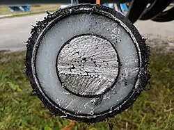 On peut également parler de champ disruptif dans le cas des câbles électriques, où le cœur (appelé également l'âme) est séparé de la gaine de masse par un isolant. Ici encore, un champ électrique radial trop élevé conduit au claquage de cet isolant, endommageant irréversiblement le câble.
