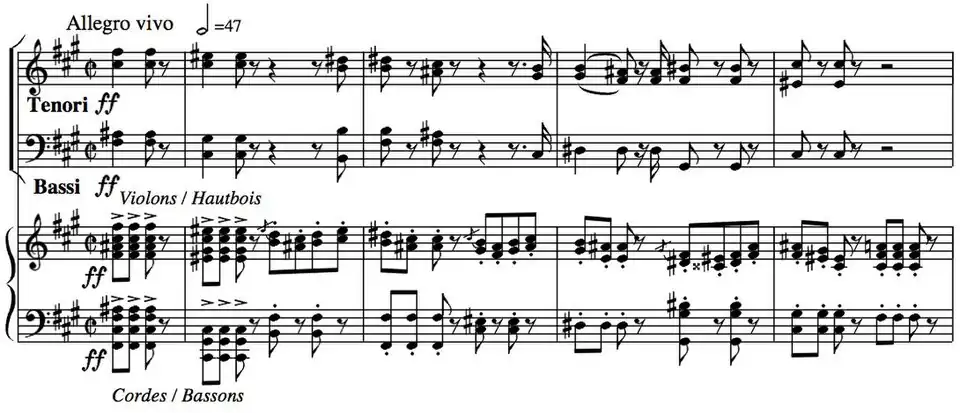 Bref prélude. Le thème menaçant de la malédiction (avec la répétition entêtante du do) en croche pointée double d'abord aux cornets va en crescendo jusqu'à exploser à l'orchestre dans un tutti dramatique suivi par un court passage déchirant aux cordes. Tout s'éteint mais les cornets continuent sinistrement leur motif inexorable jusqu'aux derniers accords éclatants de fureur.