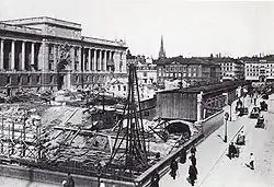 C'est pourtant sur cet îlot que l'on décide le de construire le nouveau siège du parlement et de la banque centrale. Le nouveau bâtiment doit occuper la partie ouest de l'îlot, tandis que les constructions existantes, à savoir des commerces et les écuries du roi, sont promises à la démolition[1].