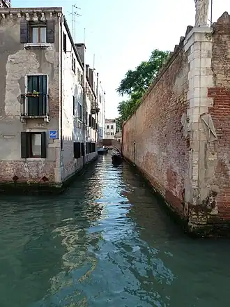 - Il longe le palais Grimani (Fondamenta Daniele Canal, 2380-81) et ses jardins sur la rive ouest.