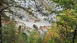 Le pont du Riolan surplombant la rivière. | |