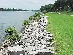 Un riprap est une couche de roches ou d'autres matériaux disposés en vrac servant à protéger un barrage, une digue ou une jetée des effets de l'érosion due aux vagues ou aux glaces[1].
