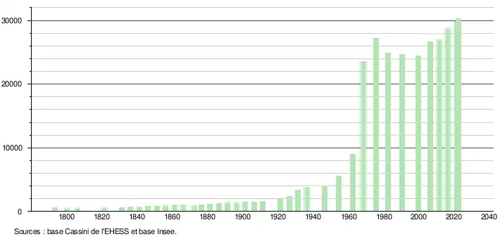 - ↑ Fiches Insee - Populations de référence de la commune pour les années 2006, 2007, 2008, 2009, 2010, 2011, 2012, 2013, 2014, 2015, 2016, 2017, 2018, 2019, 2020, 2021 et 2022.