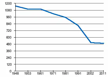 | 1 157 | 1 099 | 1 098 | 1 017 | 954 | 808 | 509[2] | 496[1] |