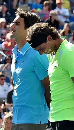 Federer a été classé no 1 mondial pendant une durée record de 237 semaines consécutives à compter de février 2004. Nadal, qui a 5 ans de moins, accède à la seconde place mondiale en et l'occupe pour une durée record de 160 semaines consécutives avant de surpasser Federer et de devenir pour la première fois numéro 1 mondial en août 2008[9]. Le grâce à sa victoire à Wimbledon, Federer occupe à nouveau la 1re place aux dépens de Nadal qui redescend à la 2e. Le Nadal reprend la place de numéro 1 mondial grâce à sa victoire au tournoi de Roland-Garros 2010. Enfin, le , Nadal perd la première place au profit de Novak Djokovic, à la suite de la victoire de ce dernier en finale de Wimbledon face à Nadal. C'est la première fois depuis l'accession de Federer à la première place mondiale en que ce classement n'est détenu ni par Federer ni par Nadal.