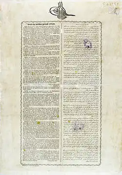 Le , un firman du sultan Abdülaziz crée un exarchat bulgare à Veliko Trnovo séparé du patriarcat grec, et donc une nation confessionnelle bulgare distincte de la grecque. Le clergé de l'exarchat de Trnovo est déclaré anathème par le patriarcat grec en 1872[4].