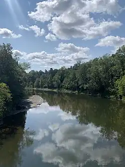 - 2,0 km vers le nord en passant sous la route 108, sous le pont ferroviaire, jusqu'à son embouchure située dans le quartier Lennoxville de la ville de Sherbrooke. Elle se déverse dans la rivière Saint-François à cet endroit.