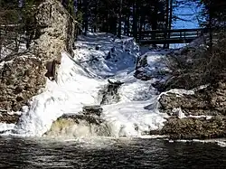 - 4,1 km vers le sud-ouest, en recueillant le ruisseau Péloquin, en passant autour de l'île Rouillard, en traversant le barrage La Poudrière, en traversant les rapides de la Poudrière et le barrage Watopeka, en traversant la partie sud de la ville de Windsor.